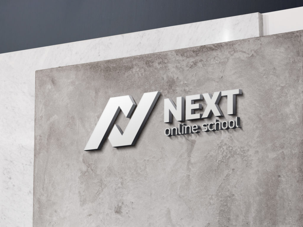 英会話スクール ロゴデザイン CLIENT NEXT online school様 PROJECT logo / 名刺 / / A4片面チラシ 依頼背景 オンライン英会話スクールのロゴ作成・企業名刺・夏のキャンペーンチラ